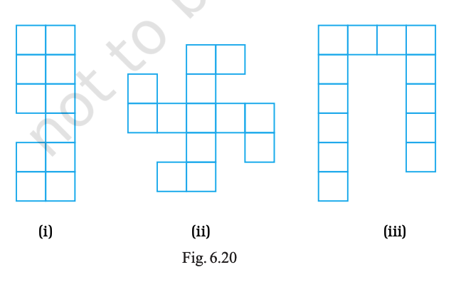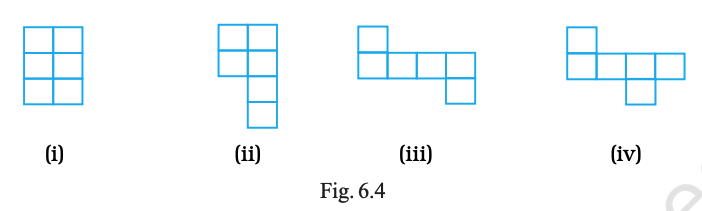 Following figures are formed by joining six unit squares. Which figure has the smallest perimeter in Fig. 6.4?