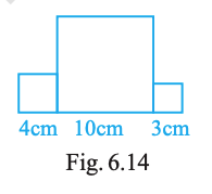 Three squares are joined together as shown in Fig. 6.14. Their sides are 4 cm, 10 cm and 3 cm. Find the perimeter of the figure.