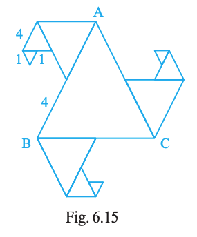 In Fig. 6.15 all triangles are equilateral and AB = 8 units. Other triangles have been formed by taking the mid points of the sides. What is the perimeter of the figure?