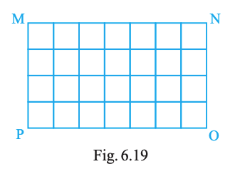 Rectangular wall MNOP of a kitchen is covered with square tiles of 15 cm length (Fig. 6.19). Find the area of the wall.