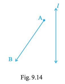 Draw the images of points A and B in line l of Fig. 9.14 and name them as A′ and B′ respectively. Measure AB and A′B′. Are they equal?