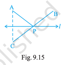 In Fig. 9.15, the point C is the image of point A in line l and line segment BC intersects the line l at P.