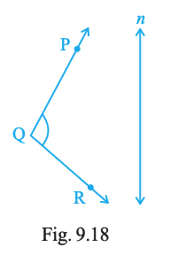 Draw the images P′, Q′ and R′ of the points P, Q and R, respectively in the line n (Fig. 9.18). Join P′Q′ and Q′R′ to form an angle P′Q′R′. Measure ∠PQR and ∠P′Q′R′. Are the two angles equal?
