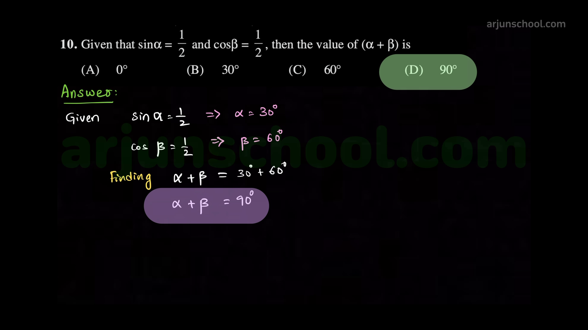 Given \(\sin\alpha=\dfrac{1}{2}\) and \(\cos\beta=\dfrac{1}{2}\), the value of \(\alpha+\beta\) is