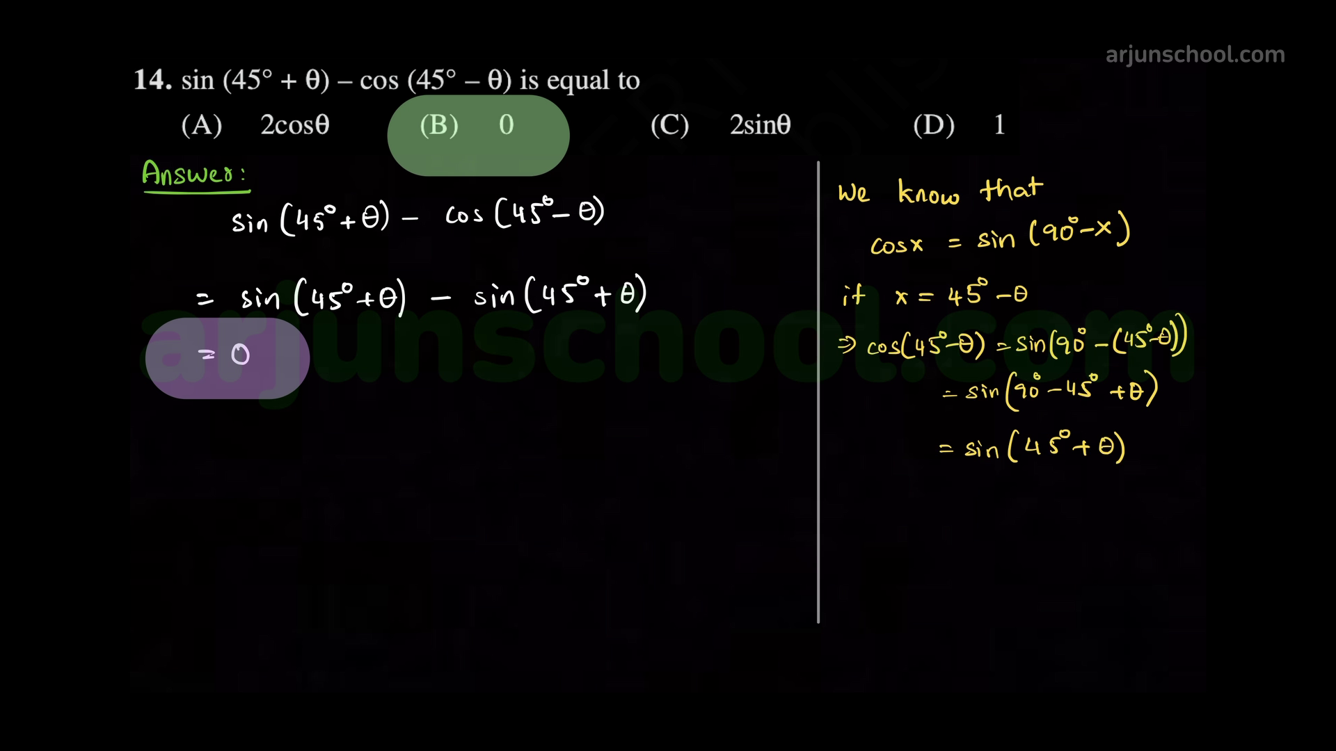 \(\sin(45^\circ+\theta)-\cos(45^\circ-\theta)\) equals