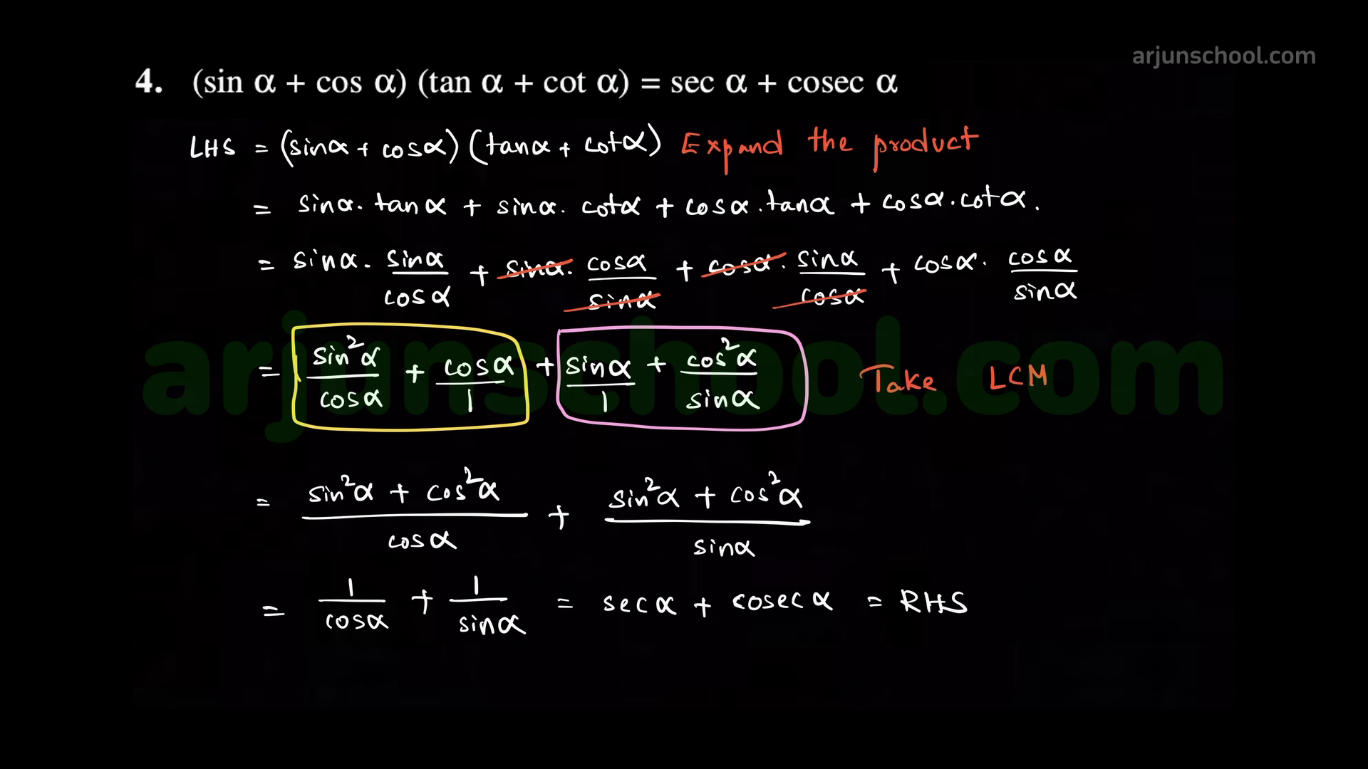 \(\displaystyle (\sin\alpha+\cos\alpha)(\tan\alpha+\cot\alpha)=\sec\alpha+\csc\alpha\).