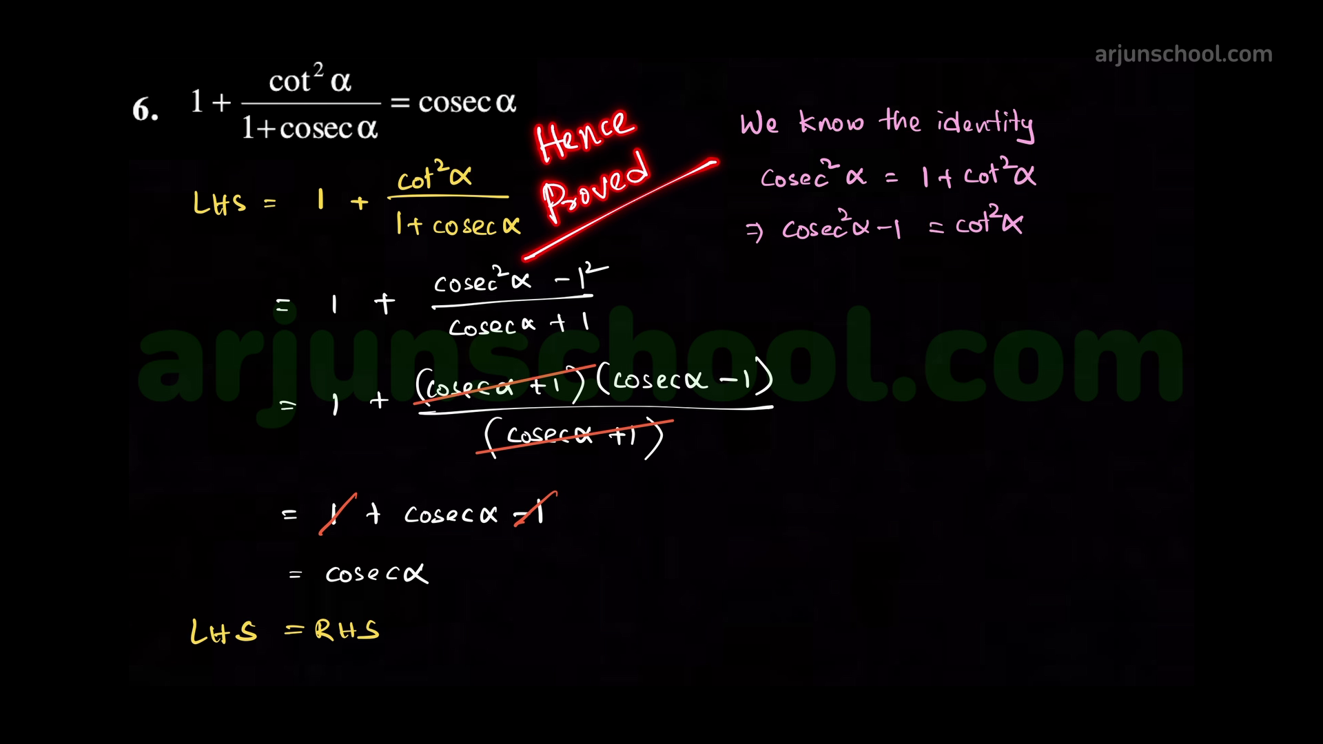 Prove that \(1+\dfrac{\cot^2\alpha}{1+\csc\alpha}=\cosec\alpha\).
